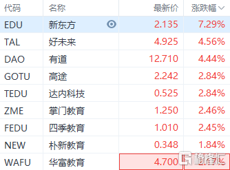 格隆汇12月8日丨新东方涨7.3%,好未来、有道涨超4%,高途涨2.8%。消息面上,新东方投资成立教育科技公司,经营人工智能硬件销售,智能机器人的研发,人工智能基础软件开发等业务。